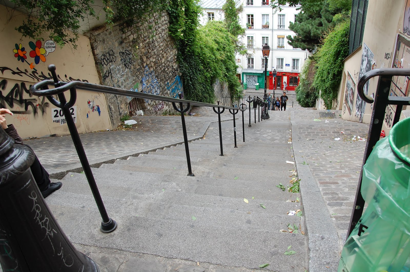 So we headed out for one last thing that we both wanted to do. I am going to just introduce this by saying that we walked up about 150 steps inside the Metro station before we even saw street level. I checked the map and located the route to the funiculaire but instead of following that route I just went ahead and followed the sign at the end of the street pointing the way to the basilica. As a result we never made it to the funiculaire but instead ended up at the bottom of this set of steps.