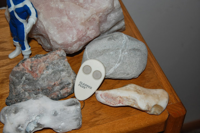 And here it is over in the rocks of the nativity scene, the Clapper Plus with Remote Control remote control.