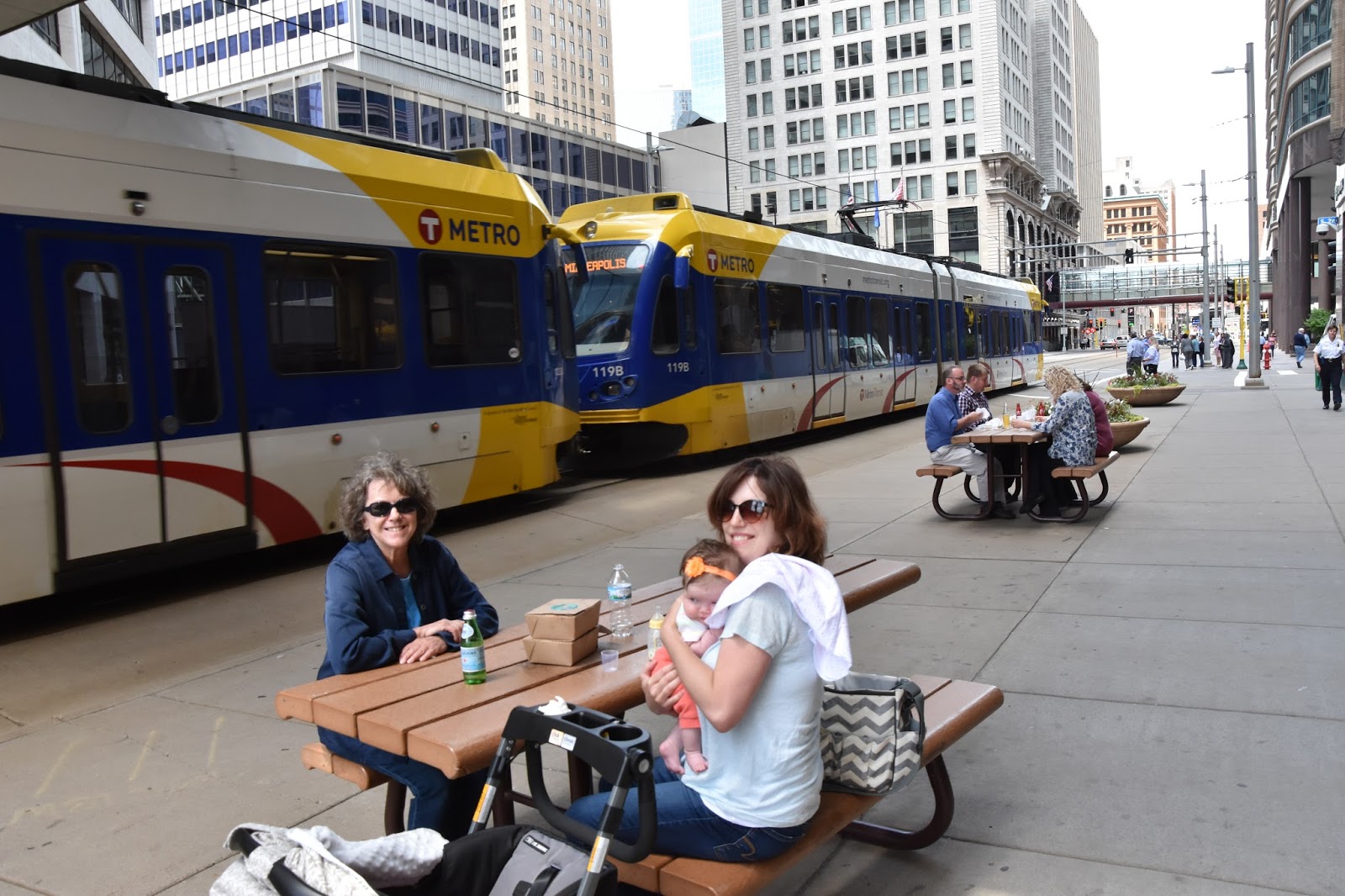 Except for Norah. Norah's Mommy brought Norah's lunch. The rest of us had lunch downtown but only after we found a picnic table on the street along the tracks.